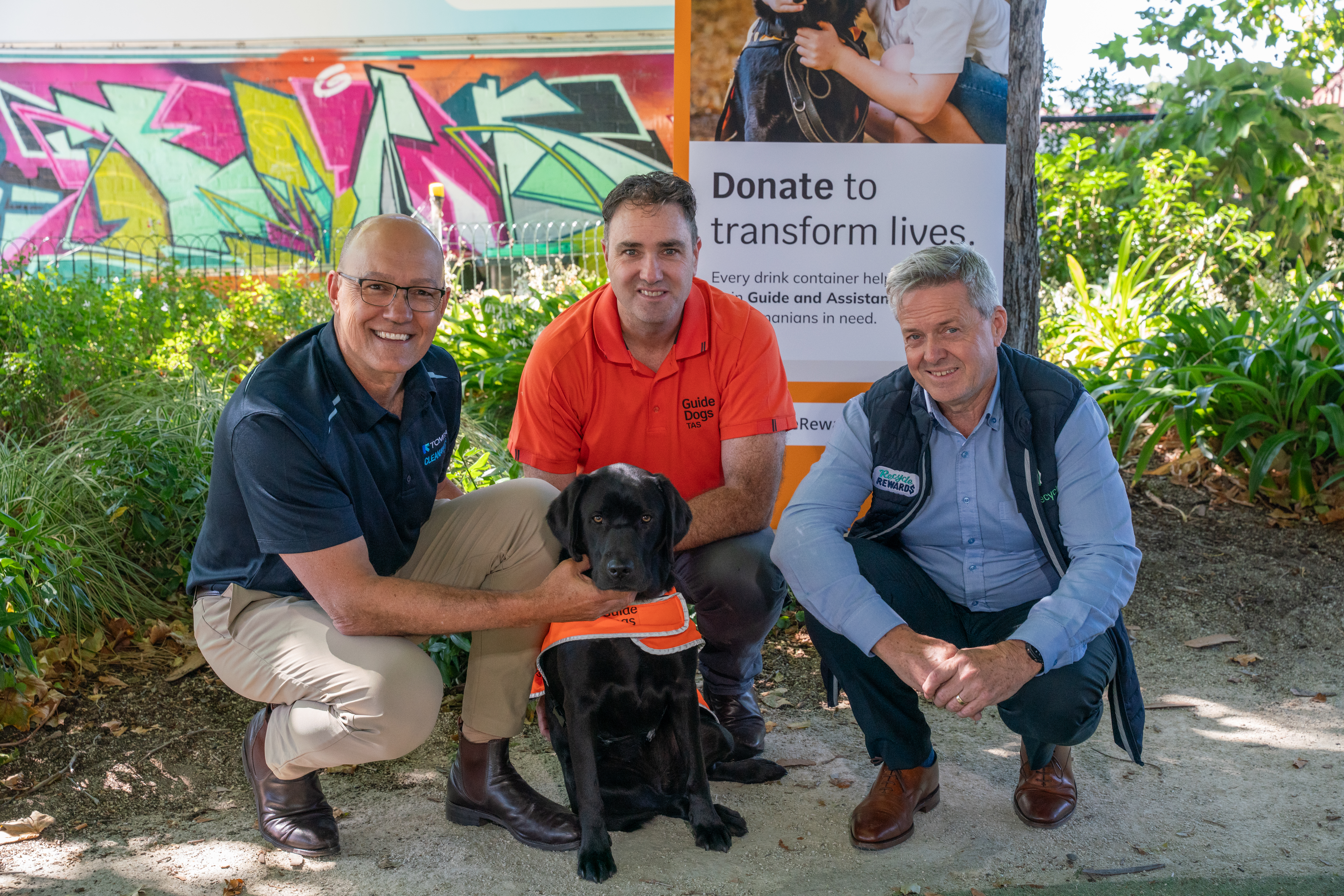 Tasmanians can now turn their 10 cent container refunds into life-changing support, with Guide Dogs Tasmania announced as the new statewide Major Donation Partner for Recycle Rewards.